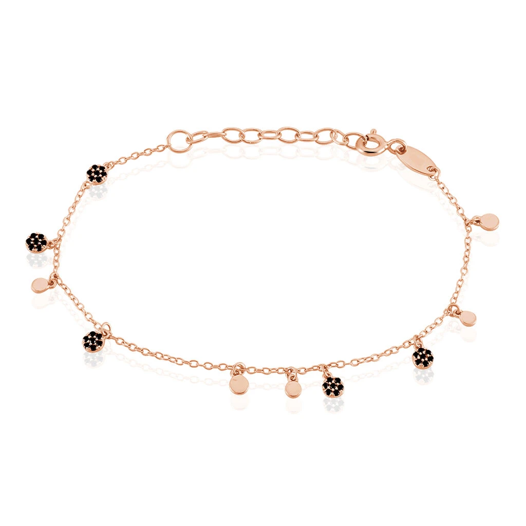 Bracelet Argent Rose 925/1000 Pastilles Micro Setting Spinelles Noires 18.5cm