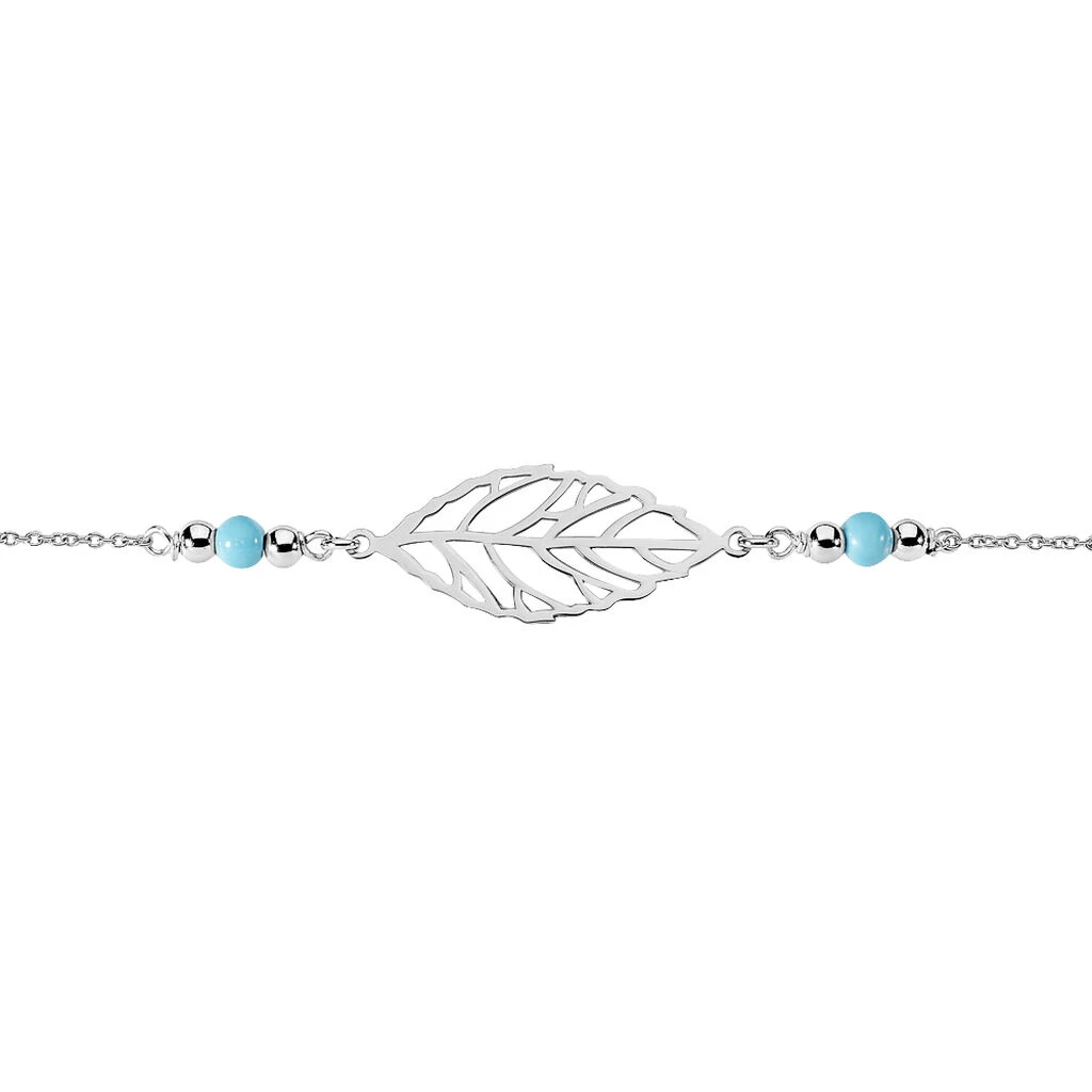 Bracelet Argent Blanc 925/1000 Feuille Ajouree Boules Resines De Turquoise Maille Forcat 18.5cm
