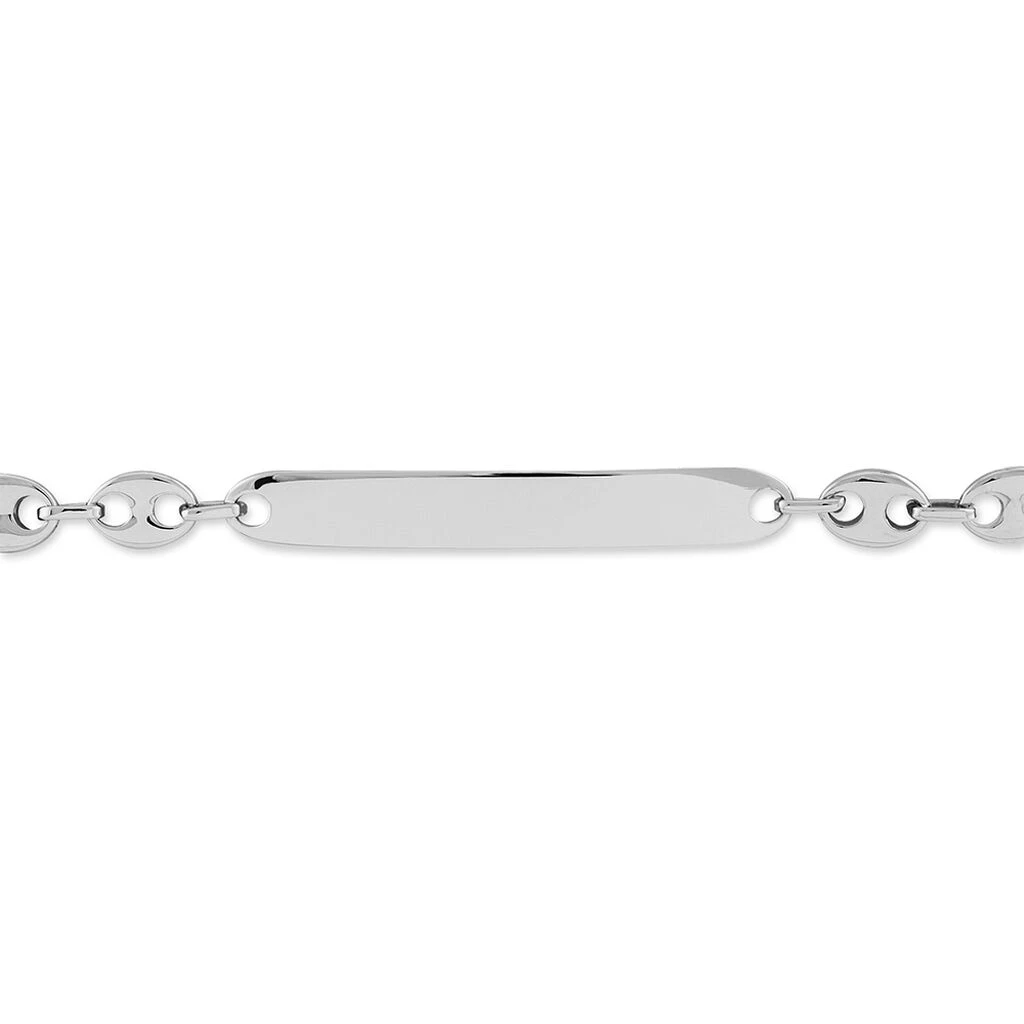 Bracelet Identite Argent Blanc 925/1000 Maille Grain Cafe Plate 6mm 19cm
