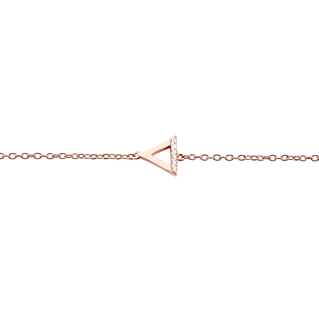 Bracelet Argent Rose 925/1000 Triangle Pavage Oxydes De Zirconium Maille Forçat 19cm