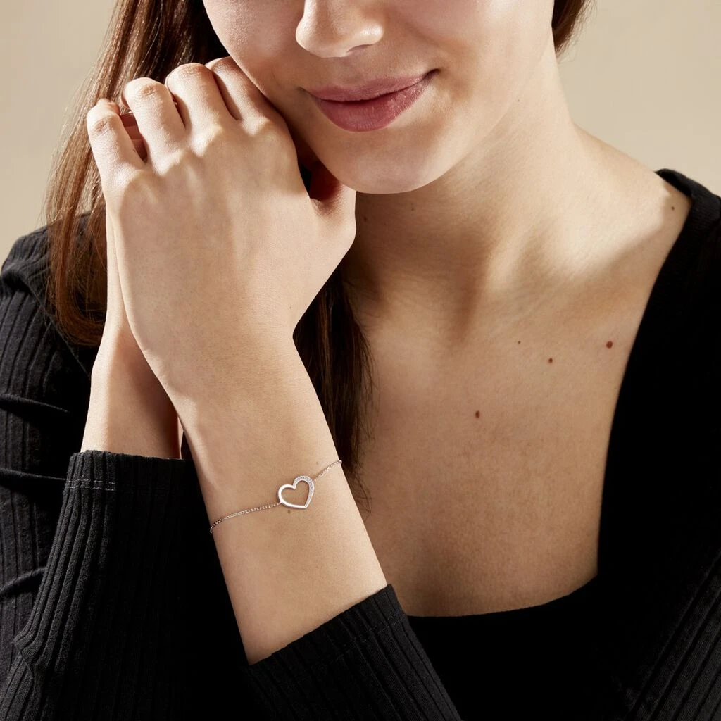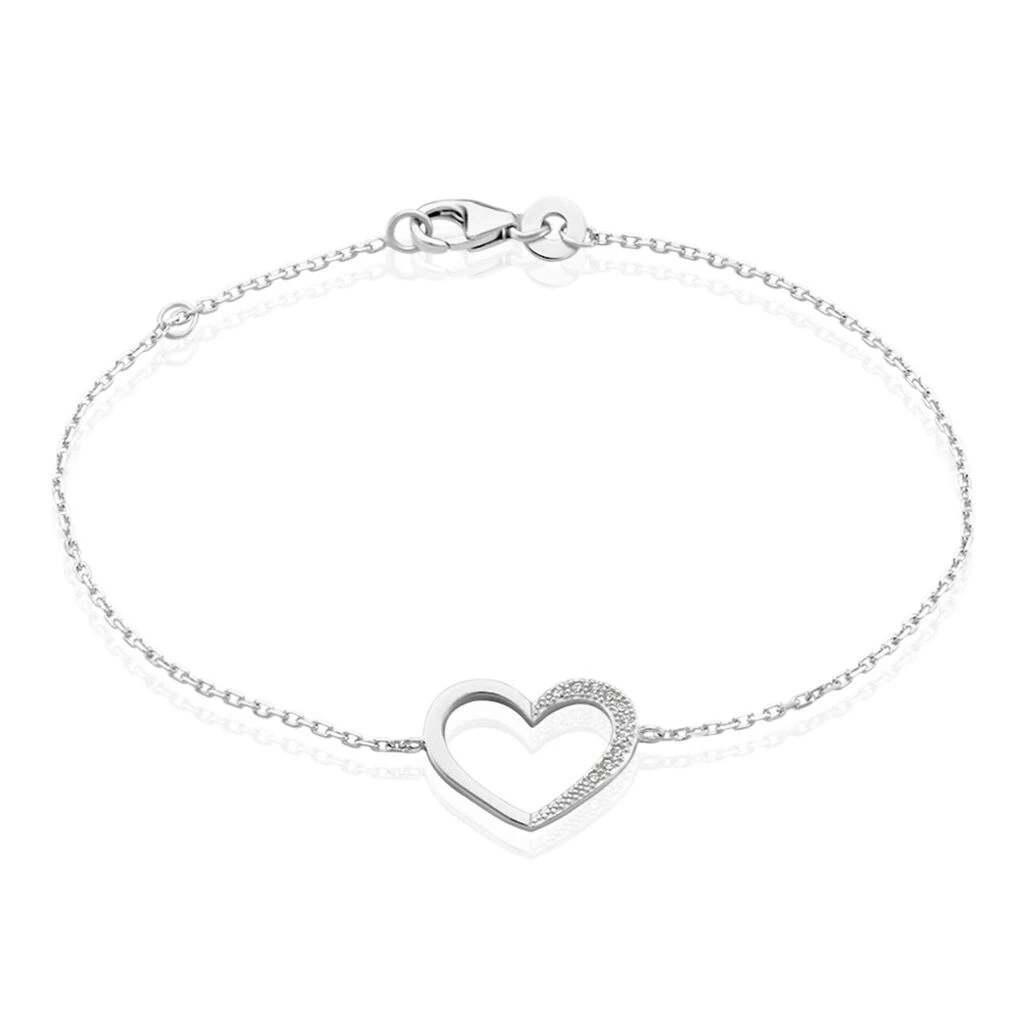 Bracelet Argent Blanc 925/1000 Oxydes De Zirconium Coeur Empierre 18cm