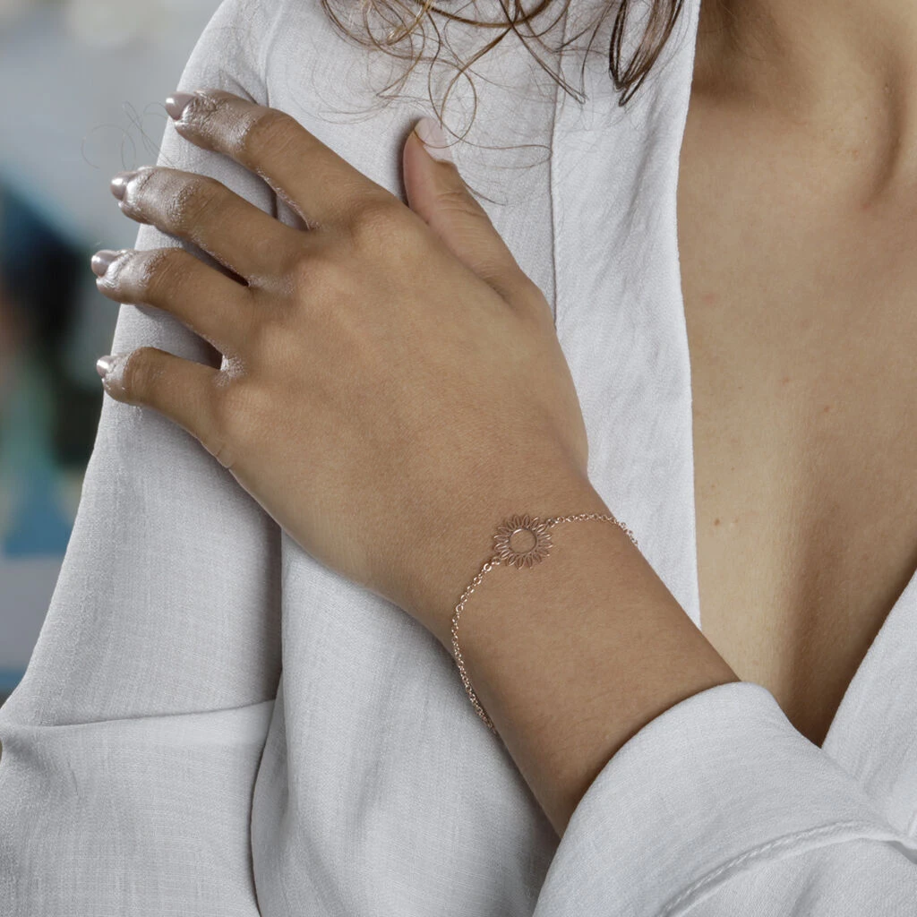 Bracelet Argent Rose 925/1000 Soleil Ajoure Maille Forcat 18cm