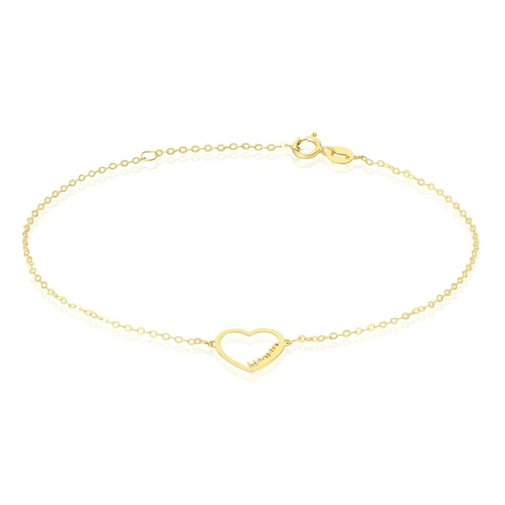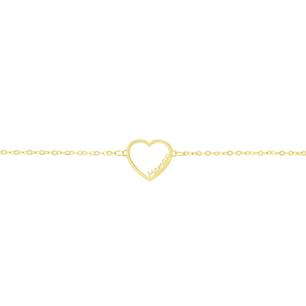 Bracelet Or Jaune 375/1000 Cœur Message Maman Maille Forçat 16+2cm