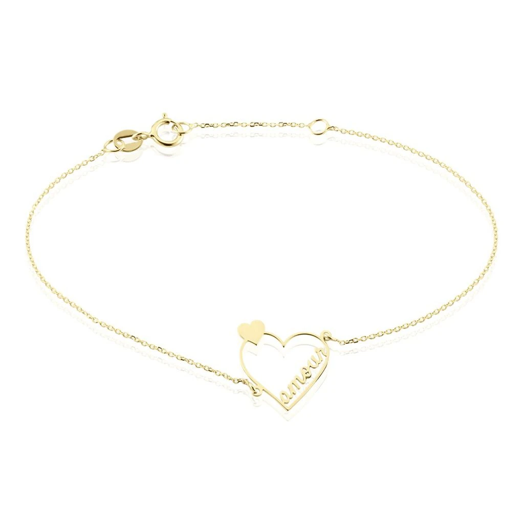 Bracelet Or Jaune 375/1000 Double Coeurs Message Amour Maille Jaseron 16/18cm