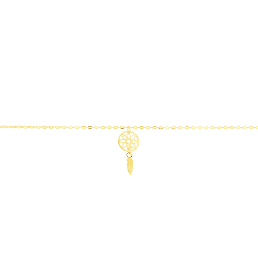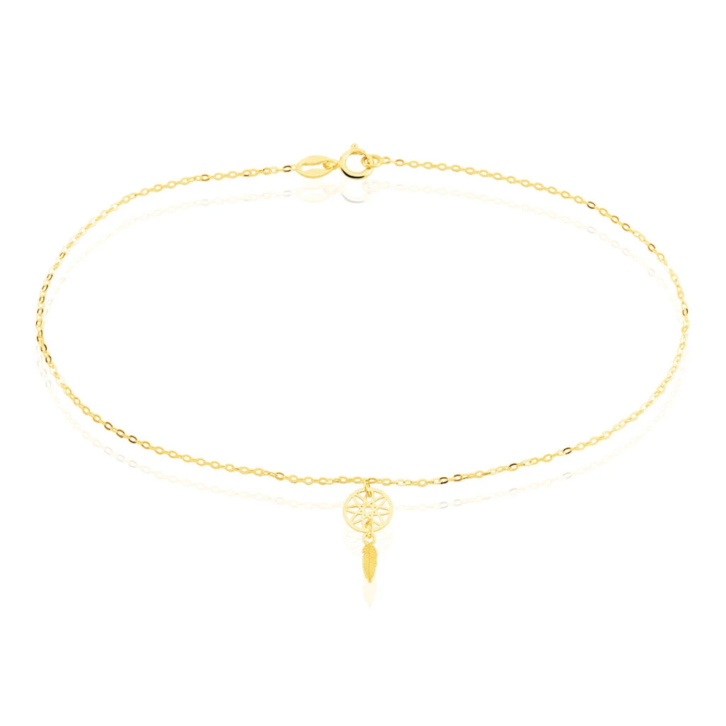 Chaine De Cheville Or Jaune 375/1000 Attrape Rêves 24cm