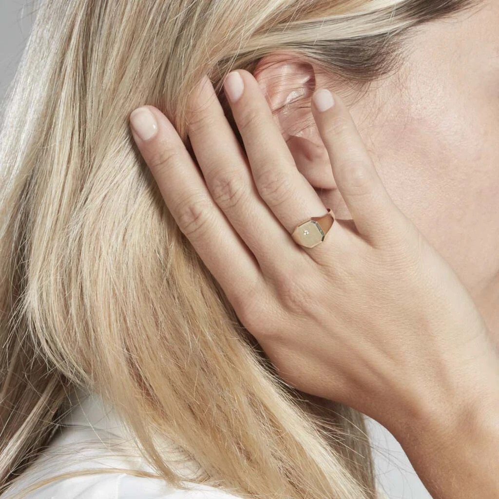 Chevalière Carree Or Jaune Oxyde De Zirconium
