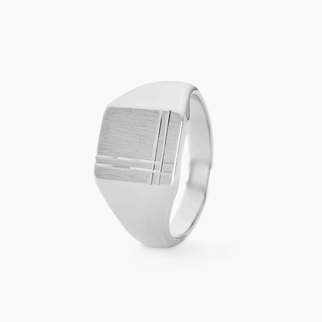 Chevaliere Argent Blanc 925/1000 Plateau Carre Cisele Encadre Pm