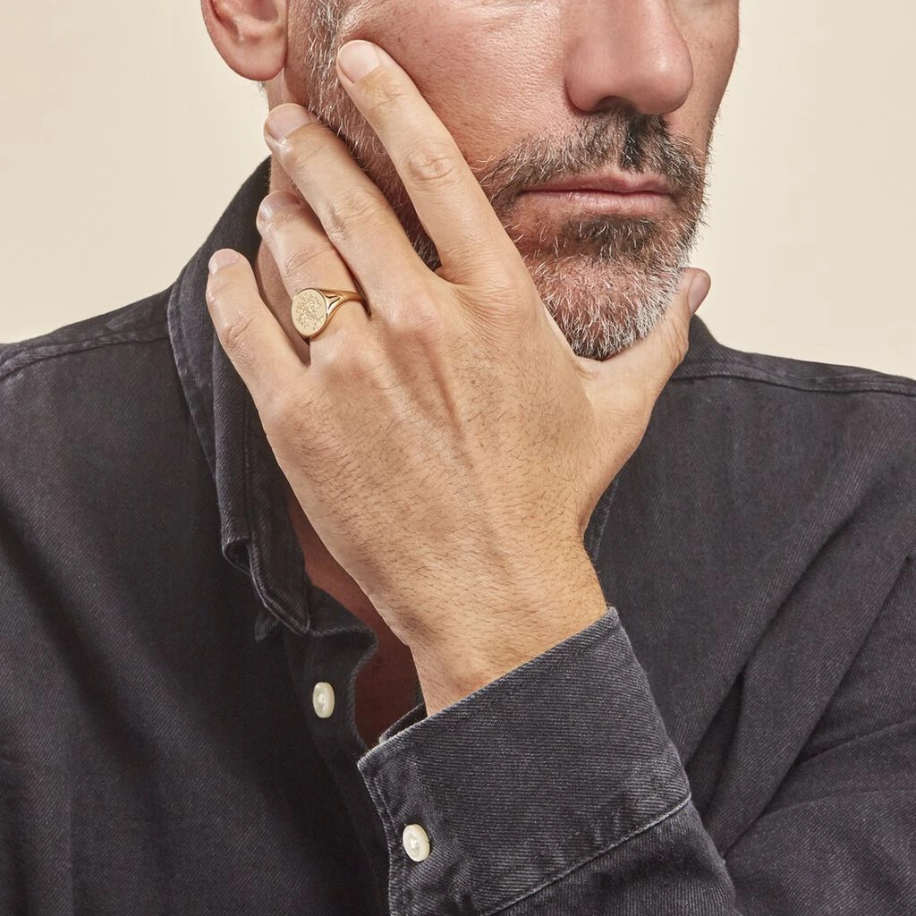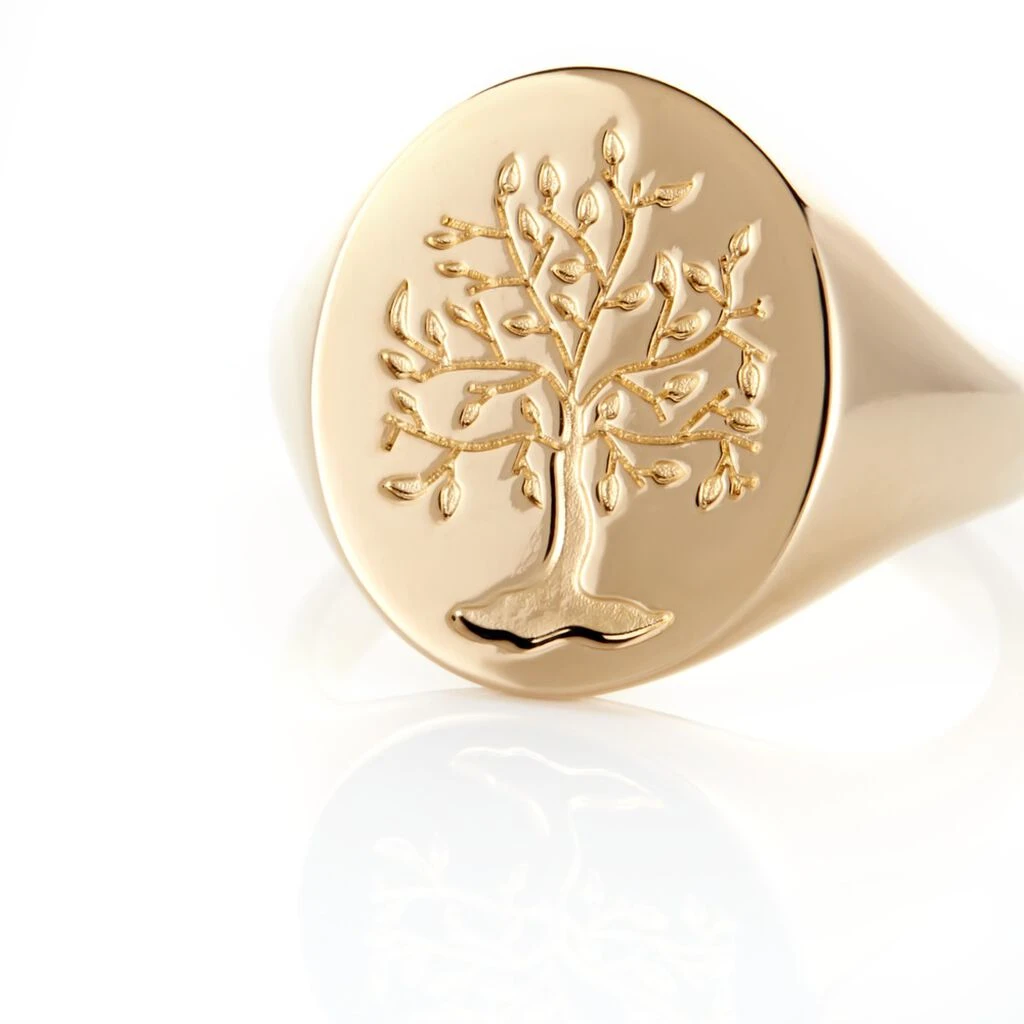 Chevaliere Plaqué Or Jaune Plateau Ovale Arbre De Vie