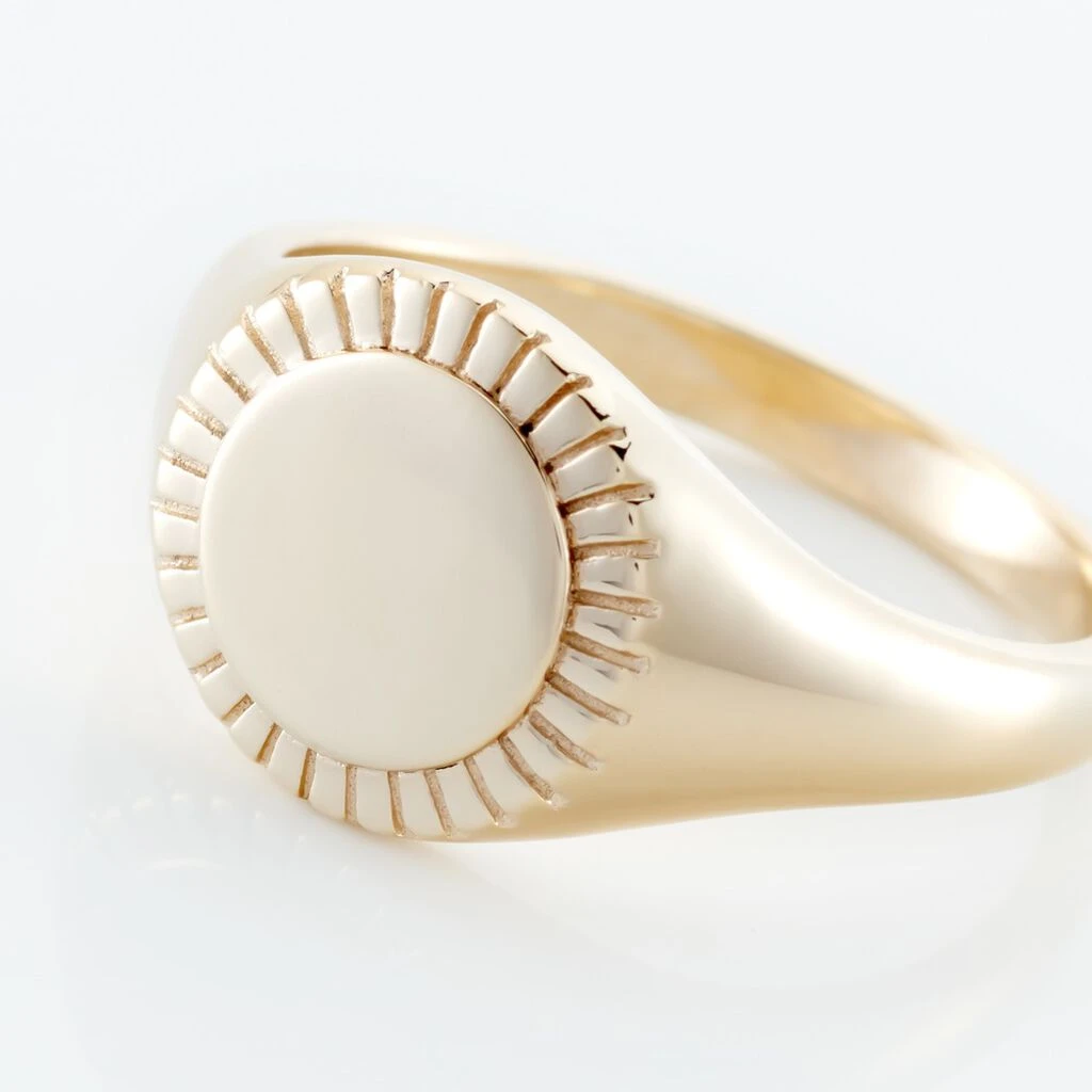 Chevalière Plaqué Or Jaune Ronde Contour Strié