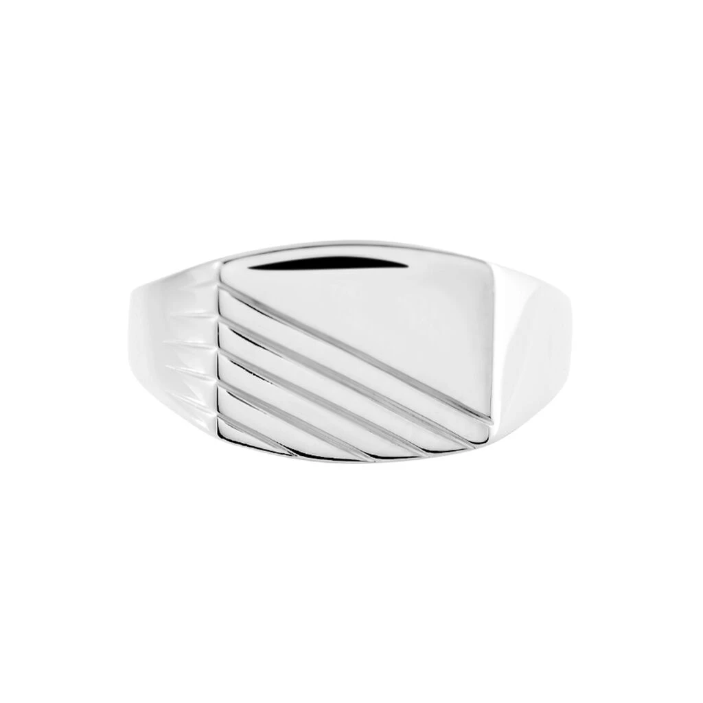 Chevalière Argent Blanc 925/1000 Rectangulaire Striée Email Noir