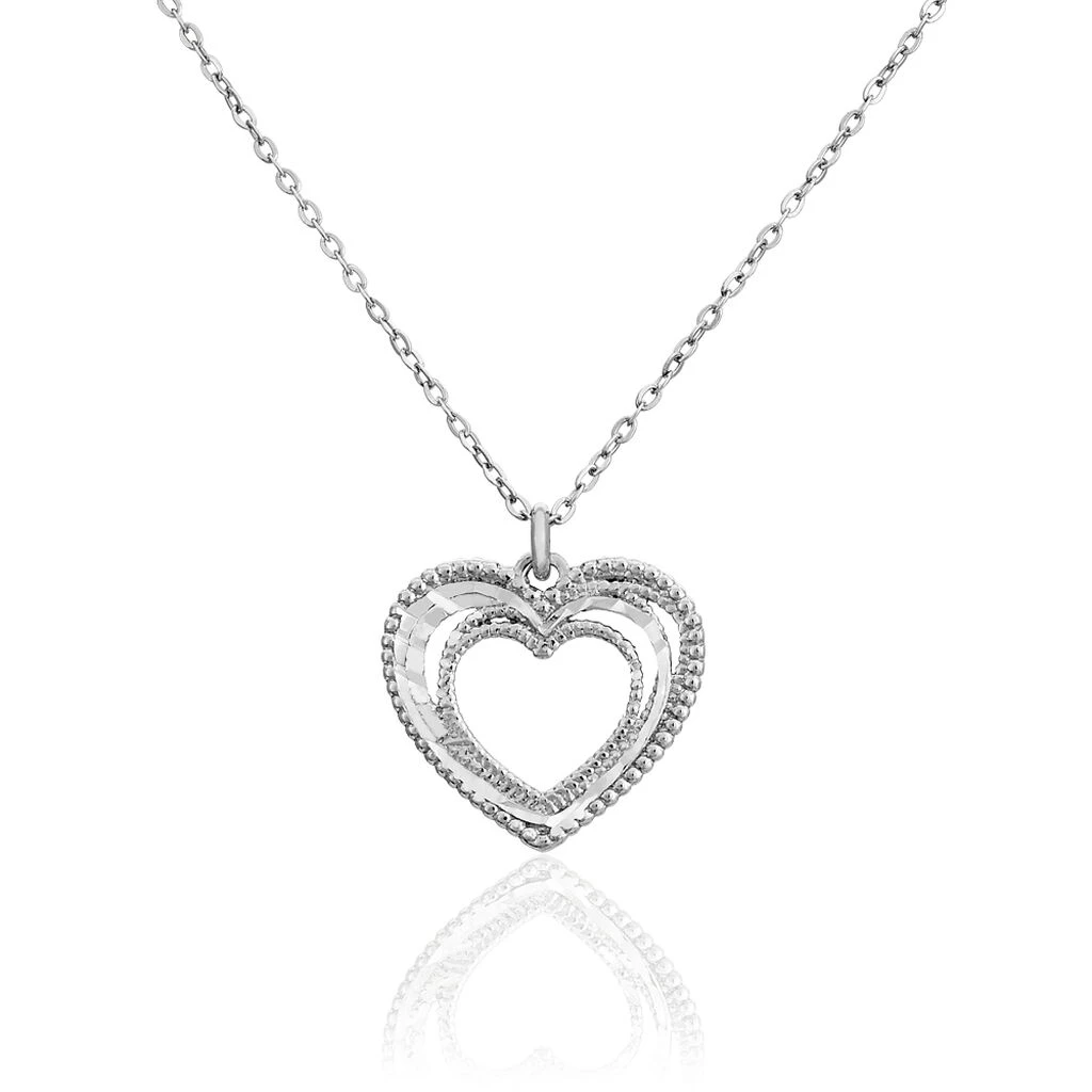 Collier Argent Blanc 925/1000 Coeur Cisele Maille Forcat 44cm