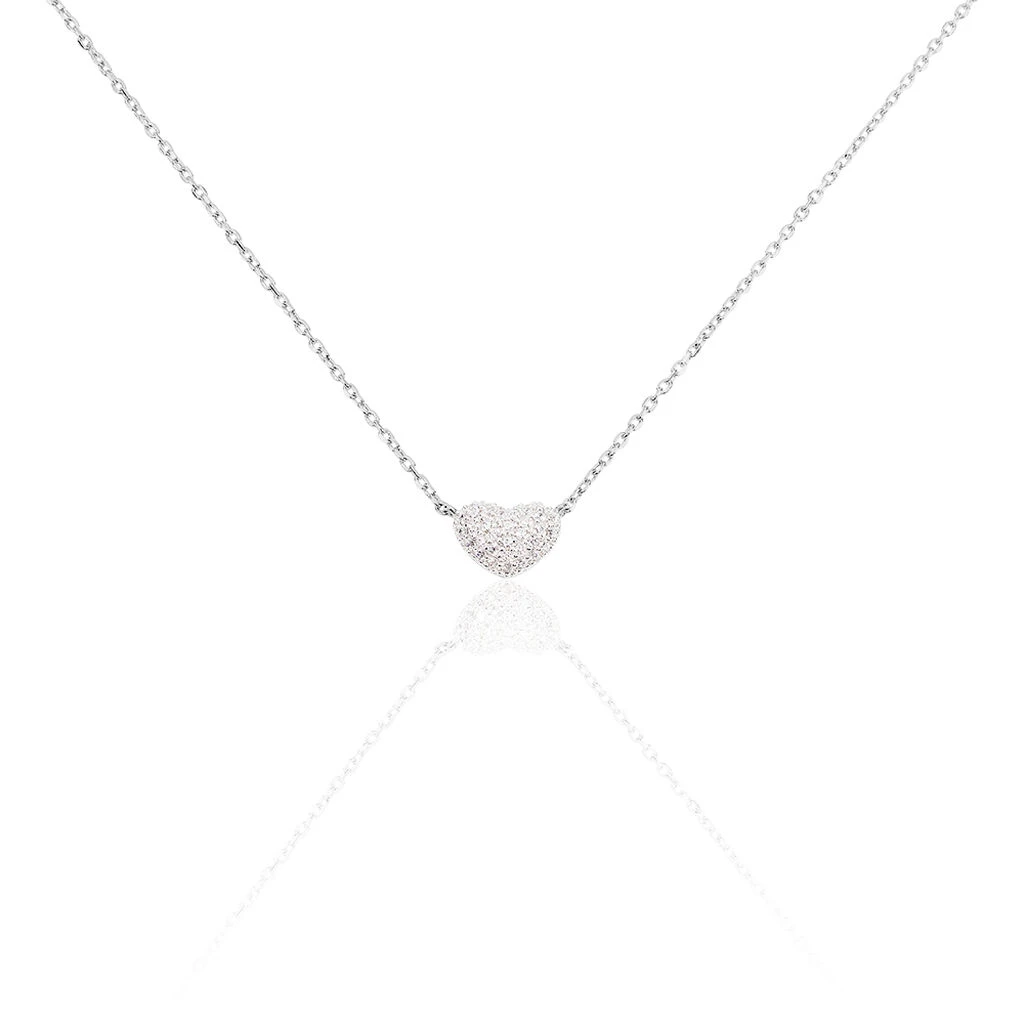 Collier Argent Blanc 925/1000 Motif Cœur Pave Oxyde De Zirconium 45cm