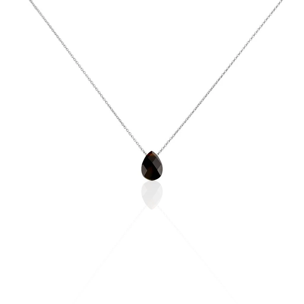 Collier Alvena Argent Blanc Rhodié Agate Noir