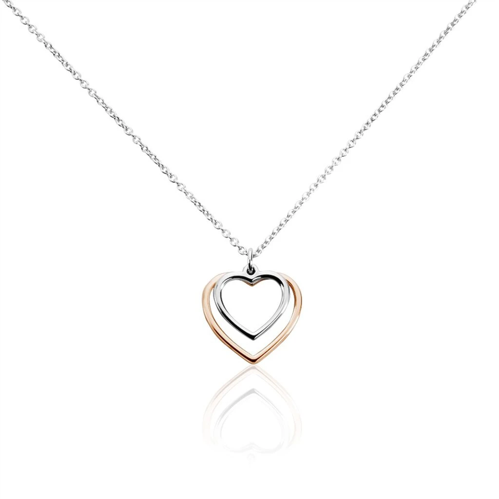 Collier Argent Bicolore 925/1000 Double Coeurs Maille Forcat 45cm