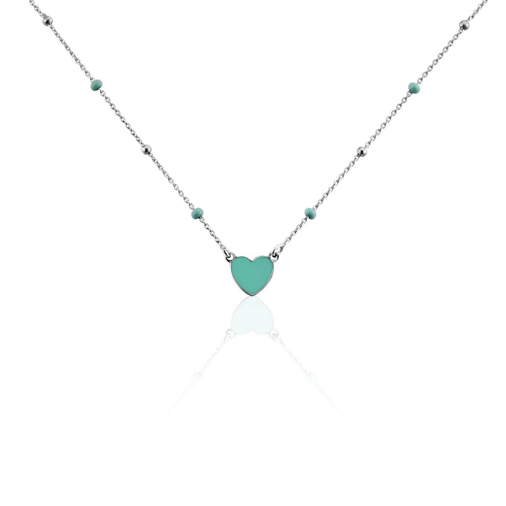 Collier Argent Blanc 925/1000 Cœur Email Bleu Maille Jaseron 38cm