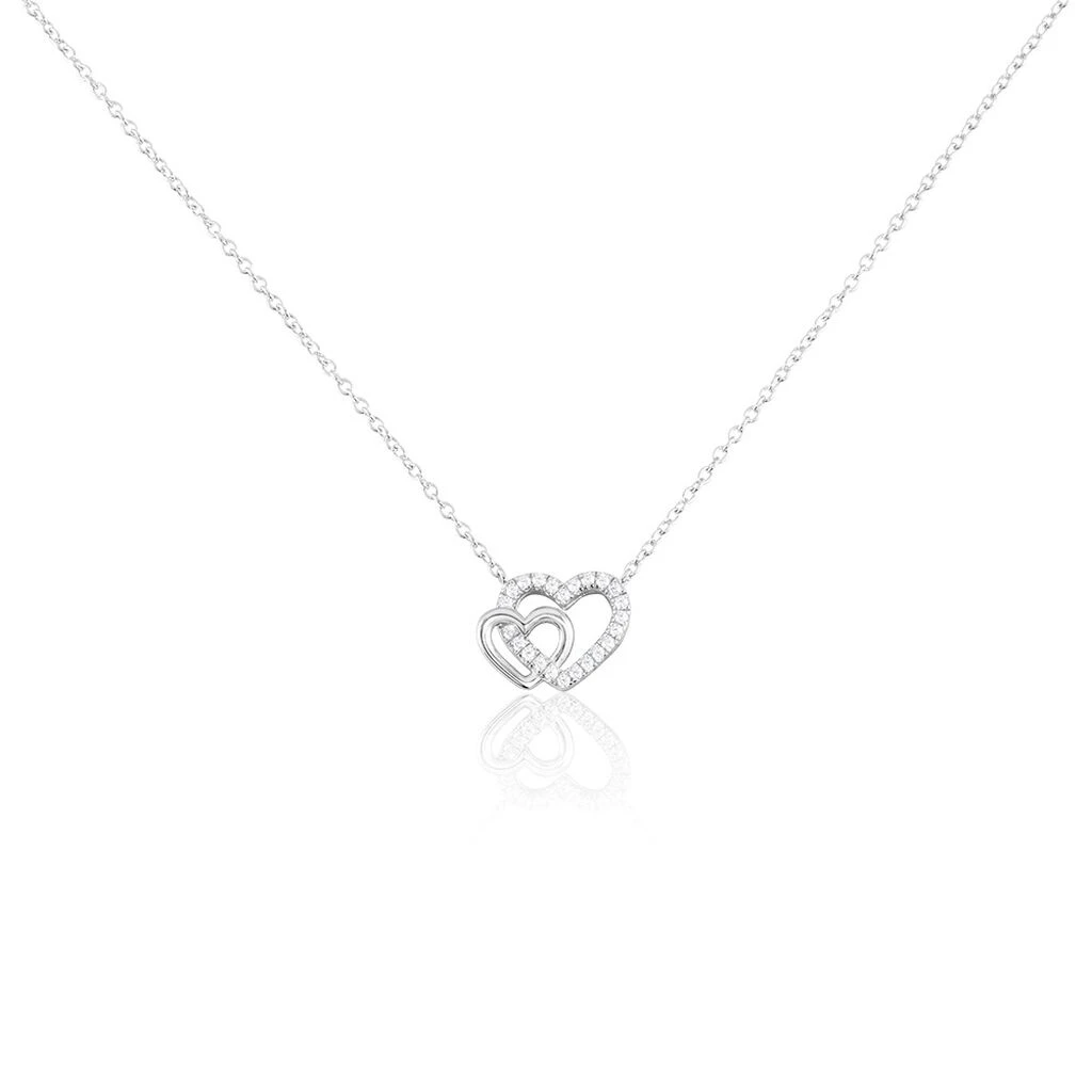 Collier Argent Blanc 925/1000 Cœur Micro Serti Oxydes De Zirconium Blancs Maille Forçat 38cm