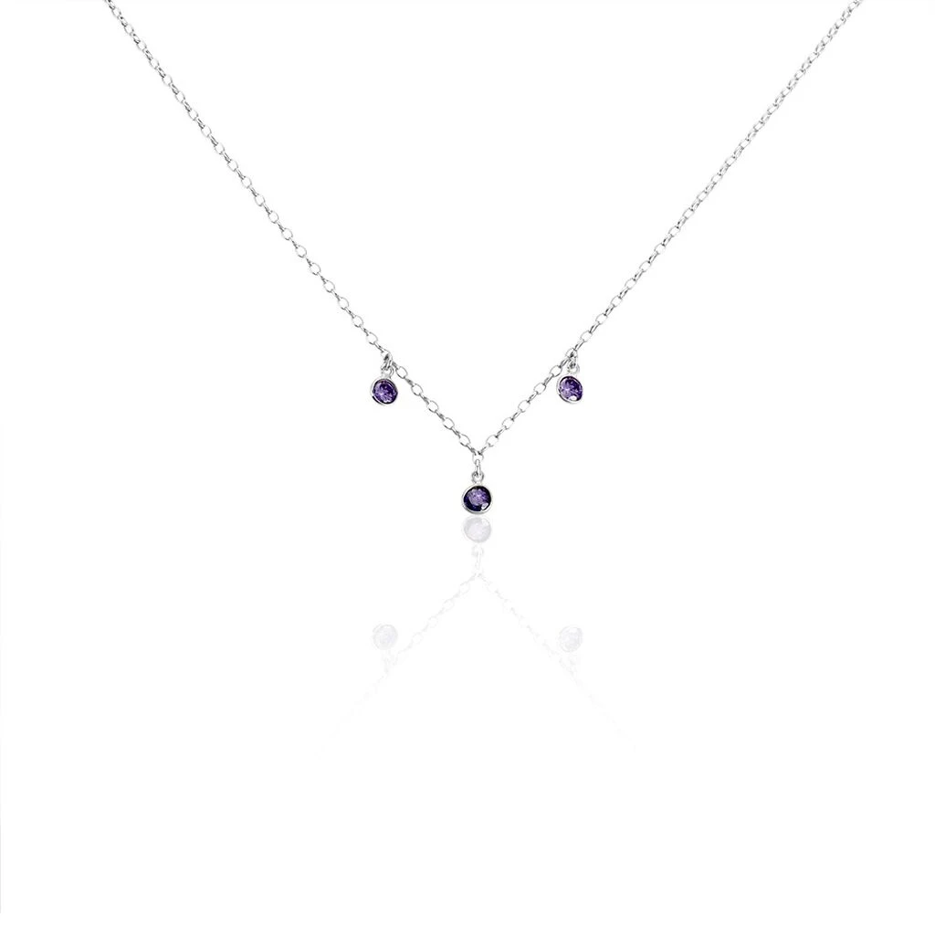 Collier Argent Blanc 925/1000 Pampilles Oxydes De Zirconium Violets 1.5mm 45cm