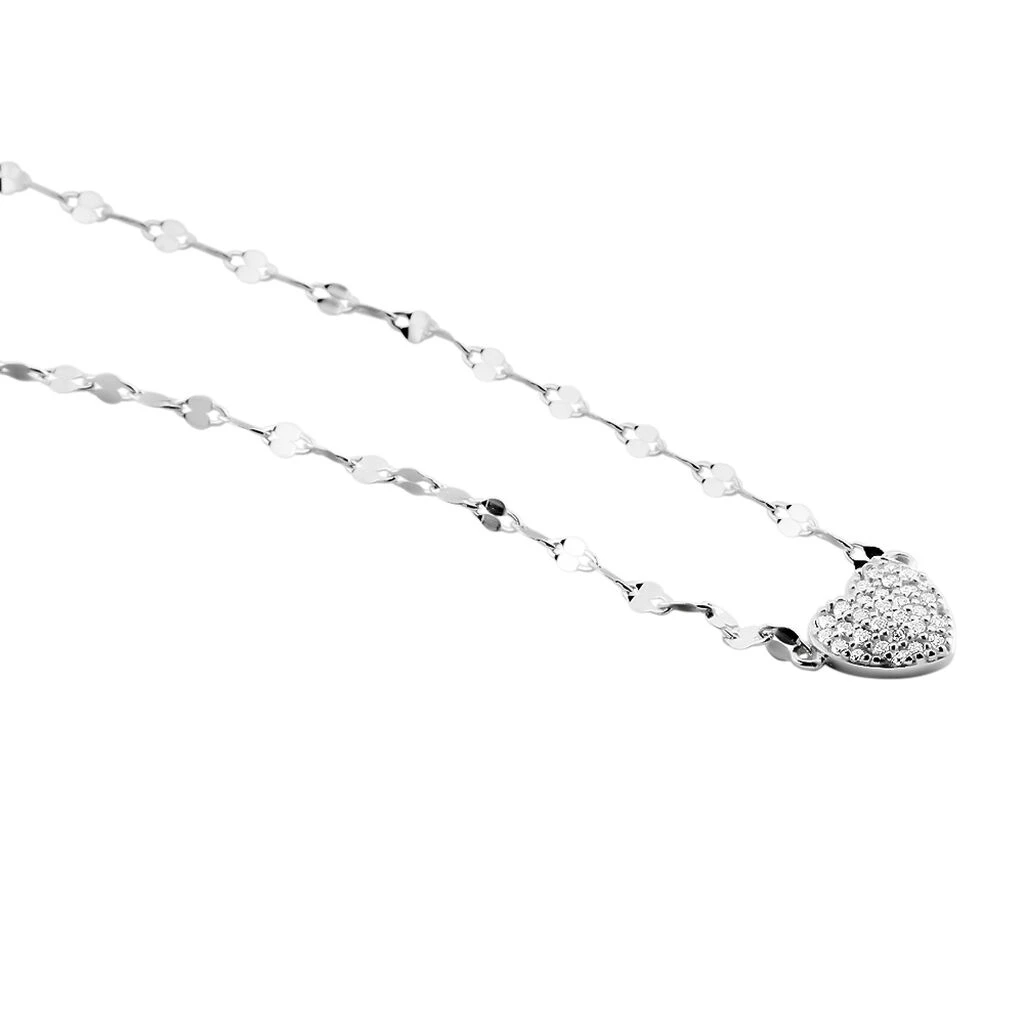 Collier Argent Blanc 925/1000 Cœur Pavage Oxydes De Zirconium Maille Lumina 45cm