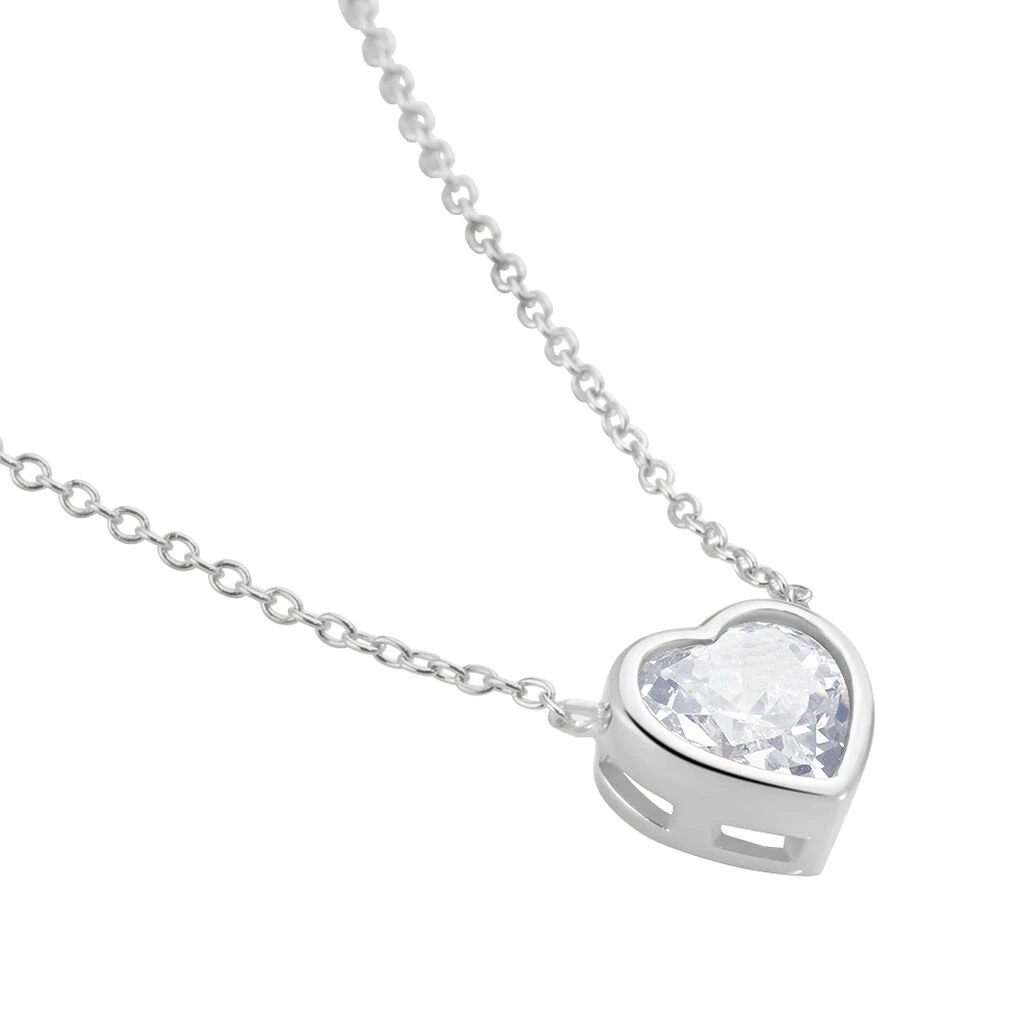 Collier Argent Blanc 925/1000 Cœur Serti Clos Oxyde De Zirconium Maille Forcat 45cm