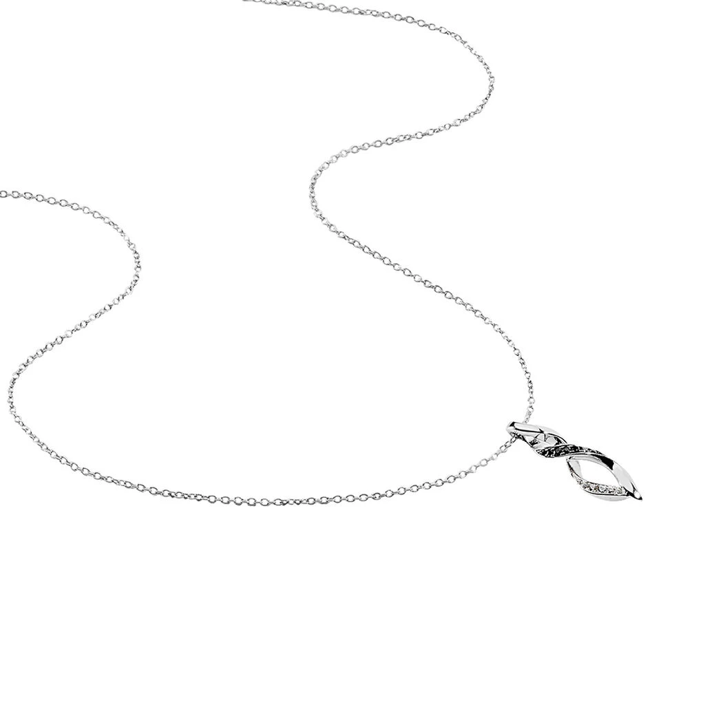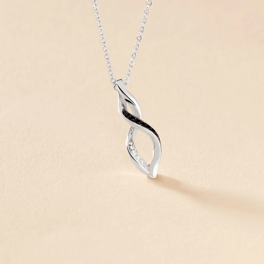 Restez chic et féminine en toutes circonstances avec ce collier en argent 925/1000ème. Il met en avant des vagues entrelacées incrustées d’oxydes de zirconium noirs et blancs en guise de pendentif. Celui-ci s’accroche sur une chaîne à maille forçat de 45 cm pour habiller votre décolleté de manière élégante.