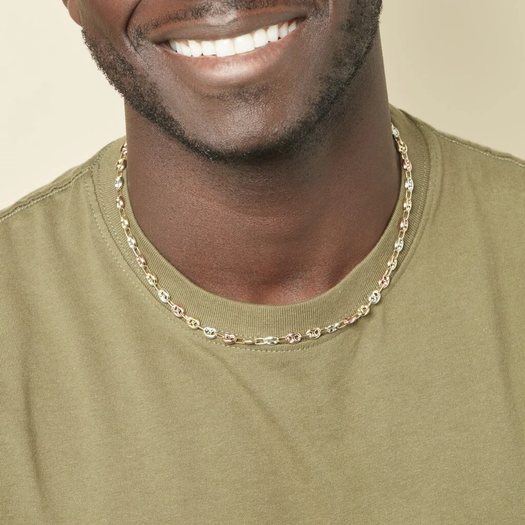 Collier Or Tricolore 375/1000 Maille Grain De Café 6mm 50cm