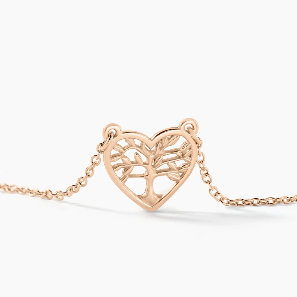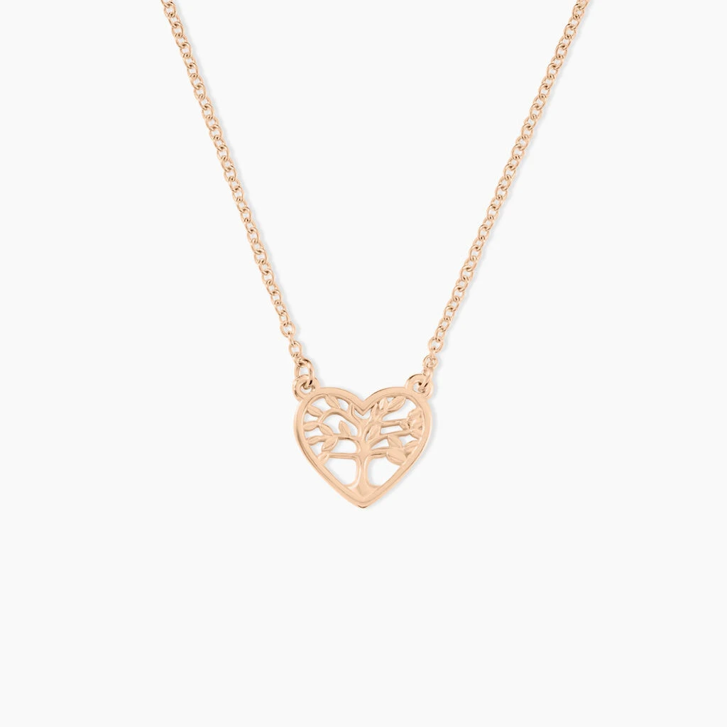 Collier Argent Rose 925/1000 Arbre De Vie Coeur Maille Forcat 40cm