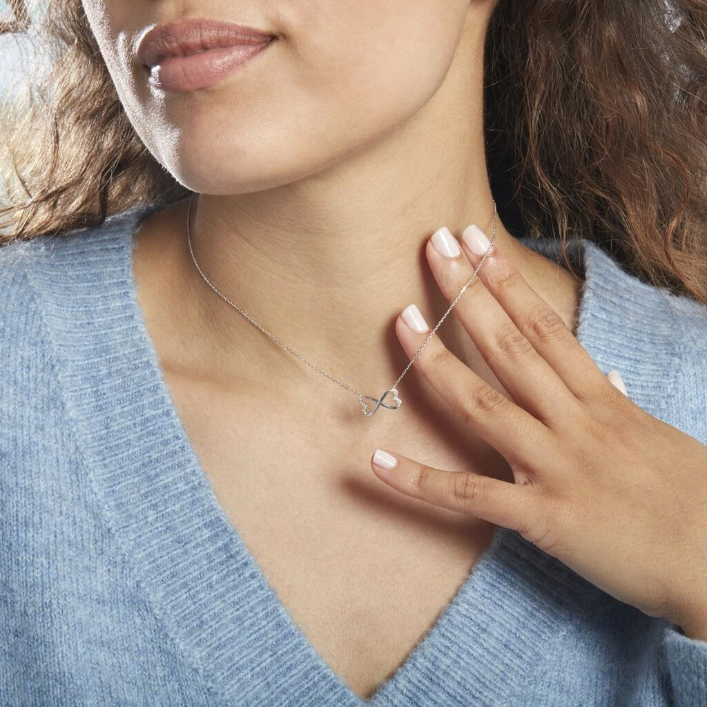 Collier Or Blanc 375/1000 Forme Infini Cœur Maille Forçat Pavage Diamants 42cm