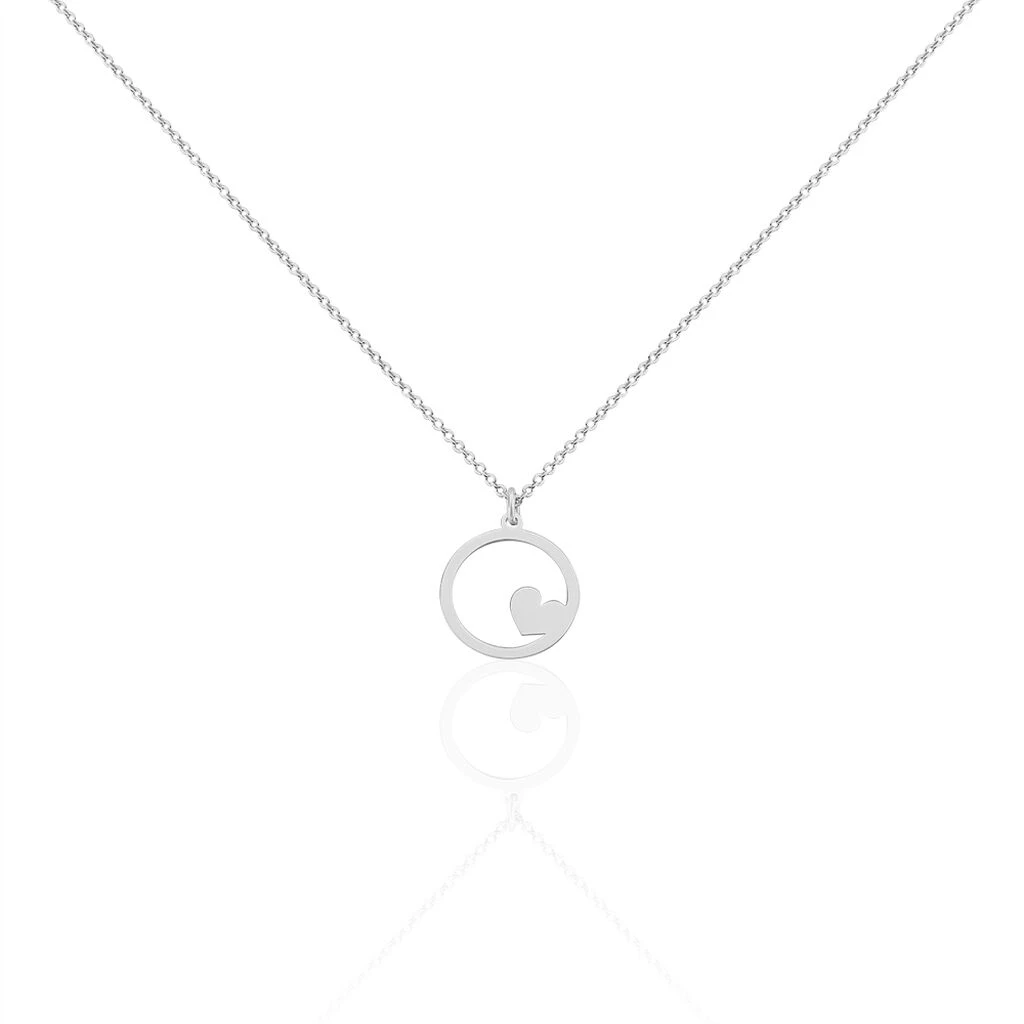 Collier Argent Blanc 925/1000 Cercle Ajoure Et Cœur Maille Forcat 42cm