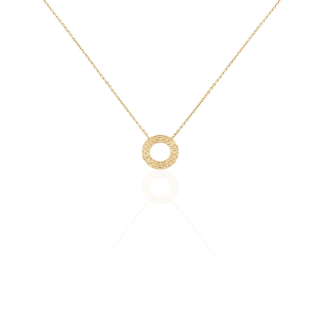 Collier Plaqué Or Jaune Cercle Ajoure Effet Strie 45cm