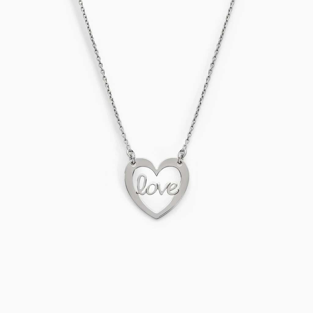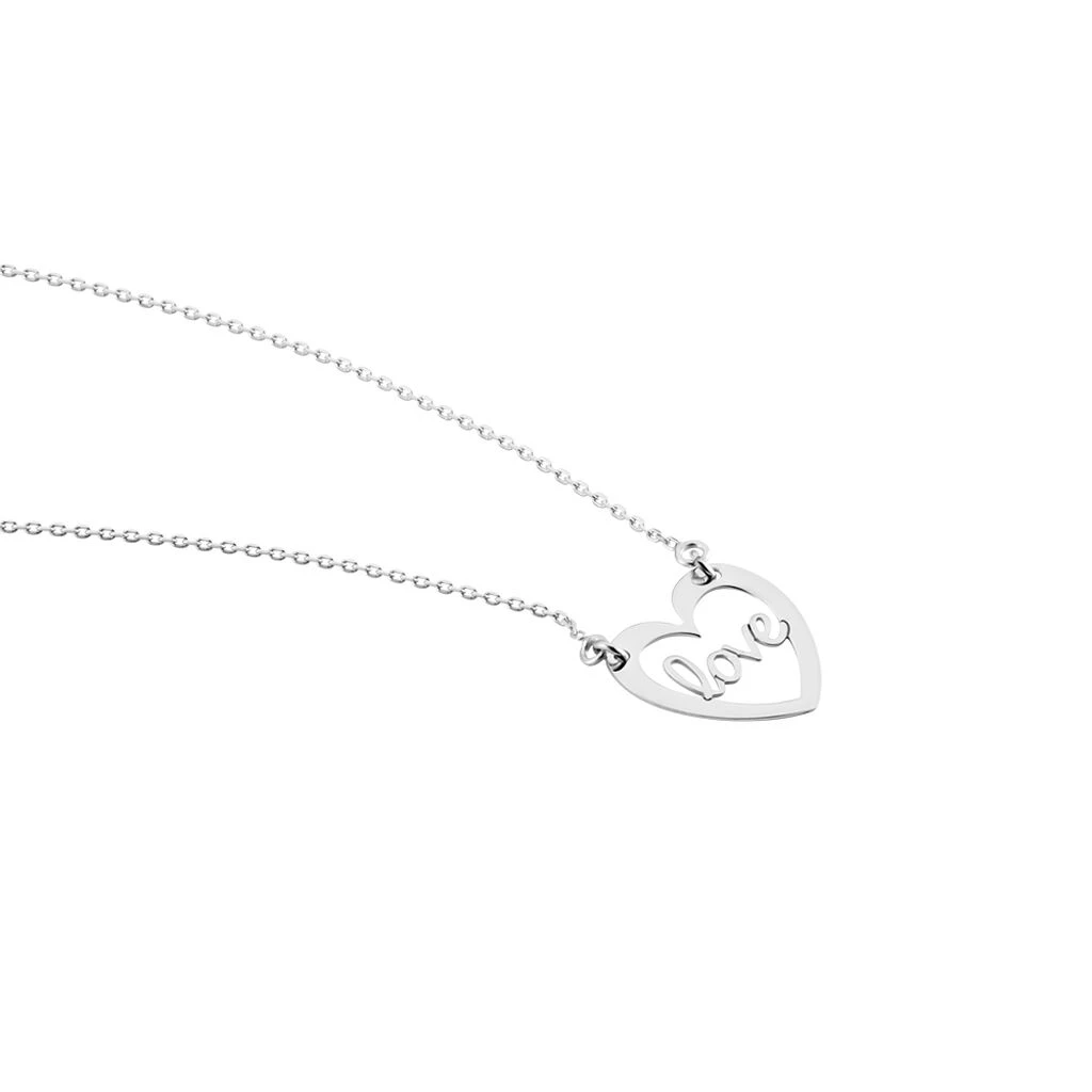 Collier Argent 925/1000 Forme Cœur Ajoure Message Love 42cm