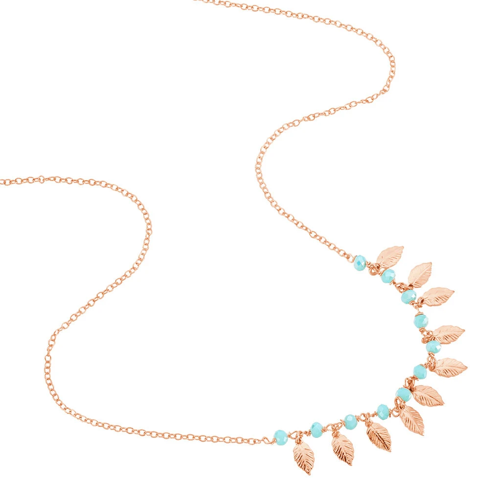 Collier Argent Rose 925/1000 Feuilles Style S + Pierres Vertes 42cm