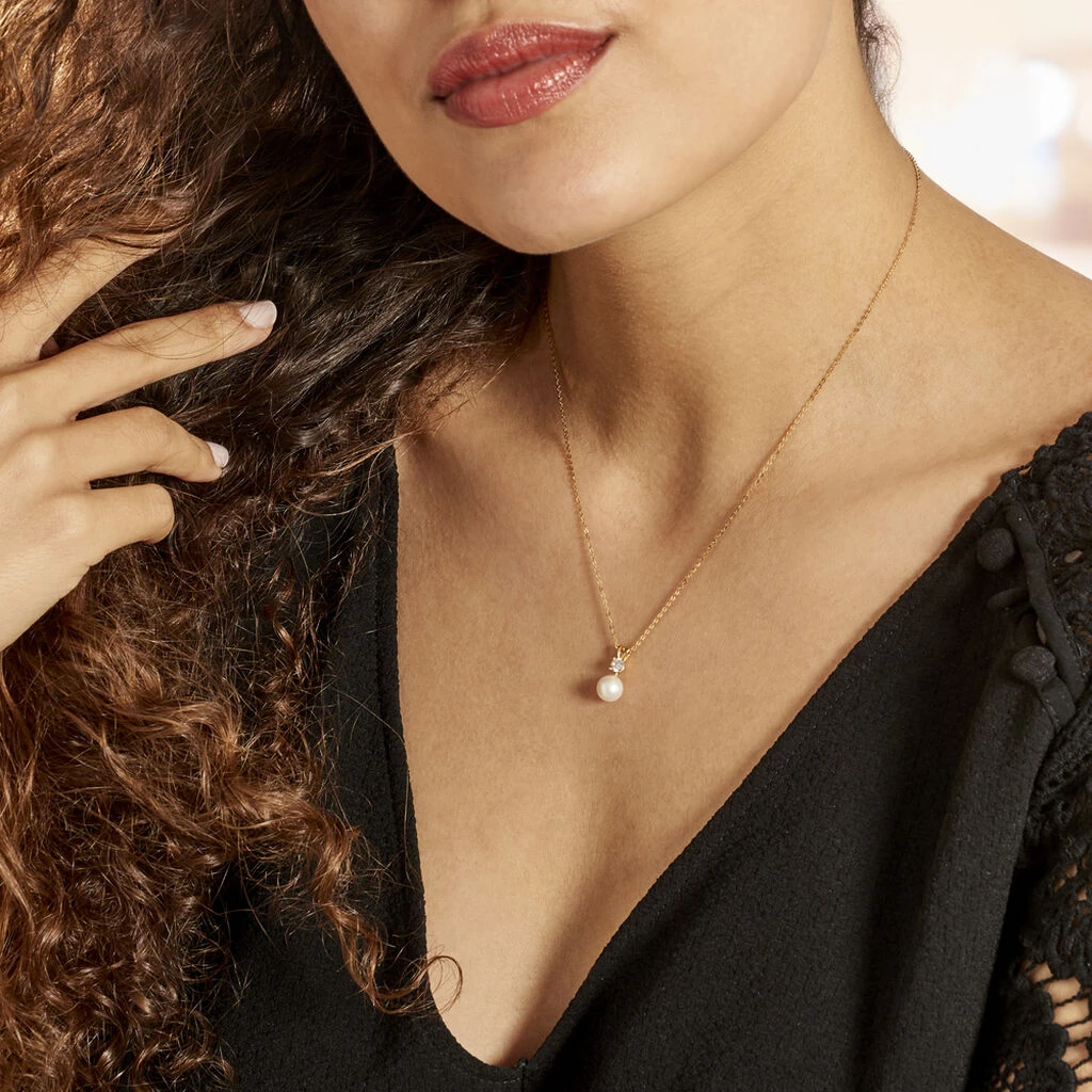 Collier Or Jaune Bragi Perle De Culture Oxyde De Zirconium