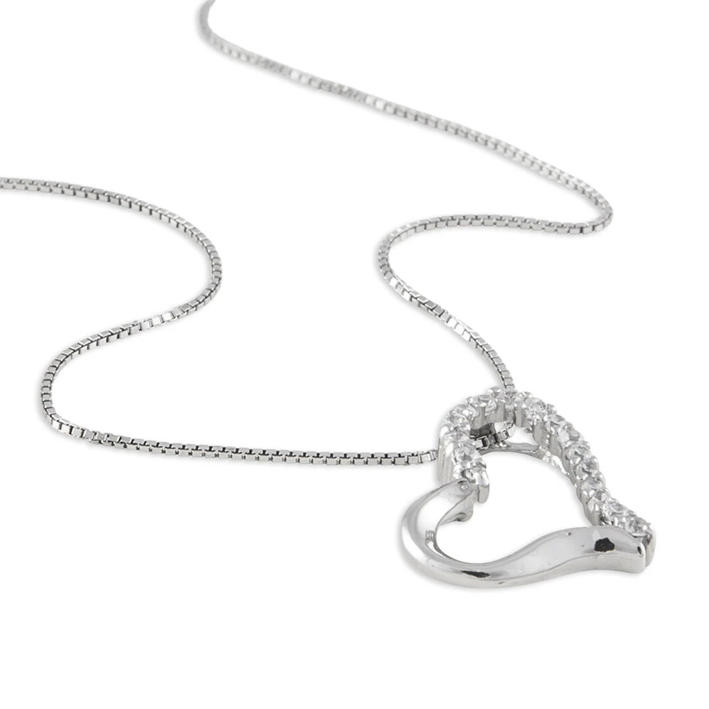 Collier Forcat Argent Blanc 925/1000 Coeur Ajoure Demi Serti D’oxydes De Zirconium