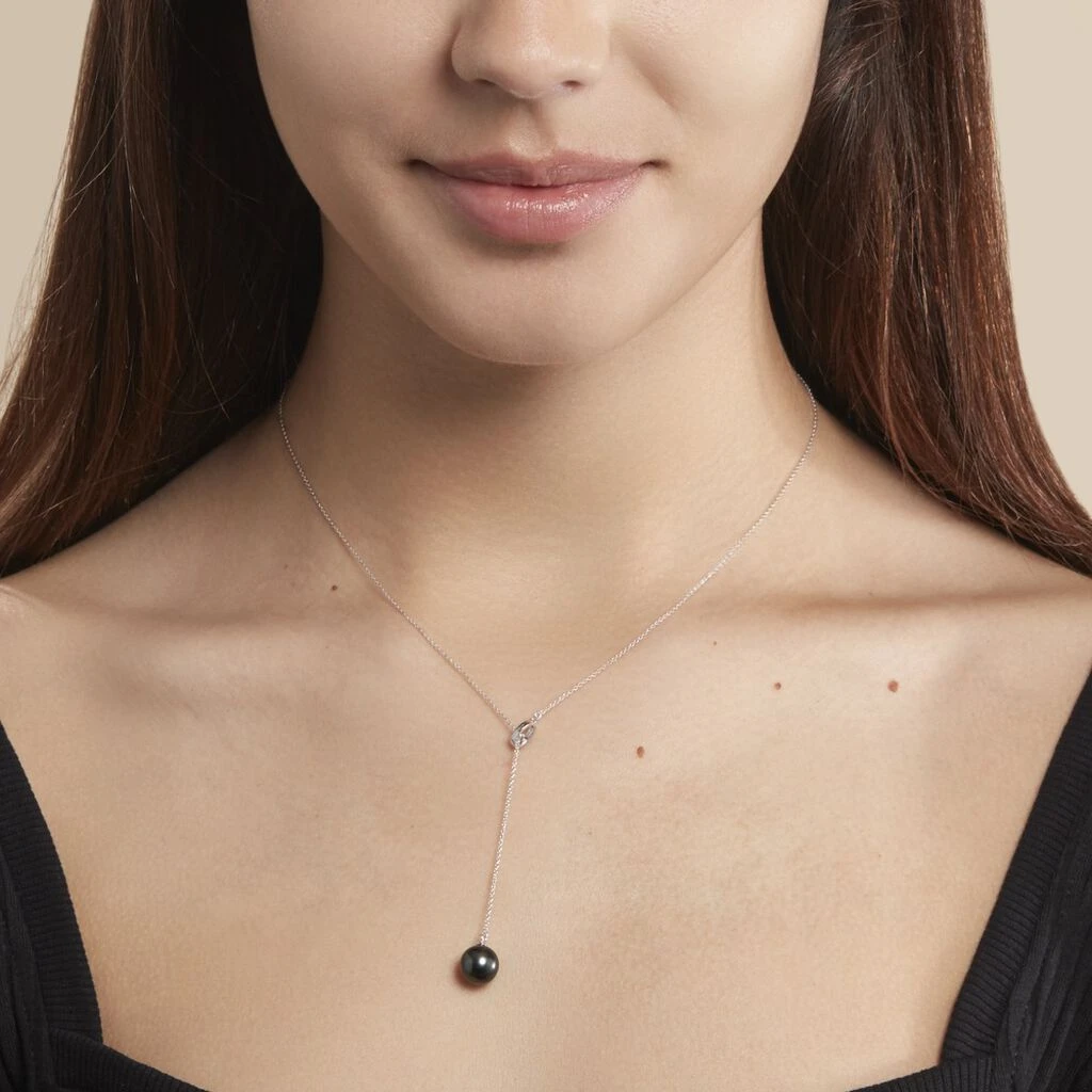Collier Perrine Or Blanc Perle De Culture De Tahiti Et Diamant