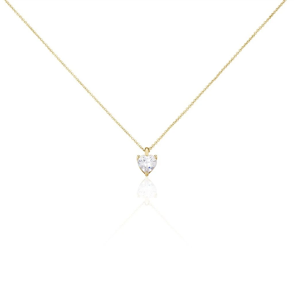 Collier Plaque Or Jaune Cœur Serti Griffes Oxydes De Zirconium Maille Forcat 44cm