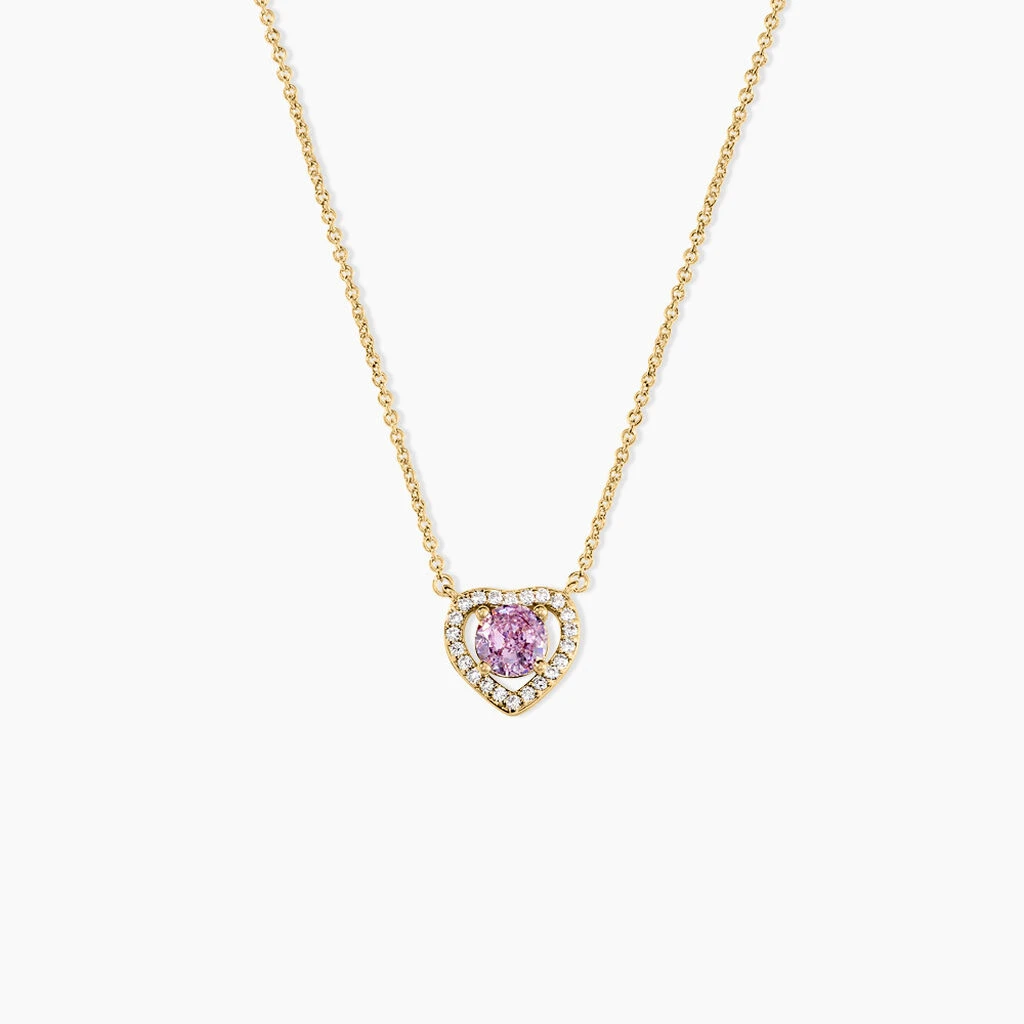 Collier Plaque Or Jaune Cœur Oxyde De Zirconium Rose Entourage Oxydes De Zirconium 44cm