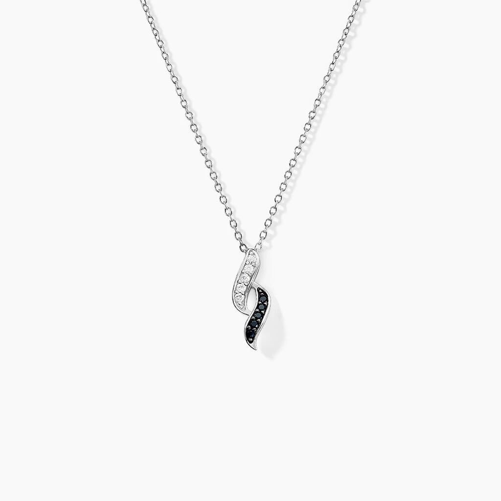 Collier Argent Blanc 925/1000 Vagues Oxydes De Zirconium Noirs Et Blancs