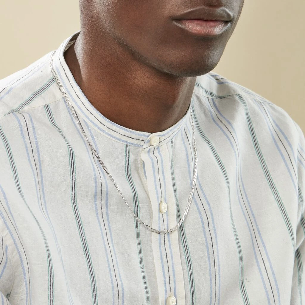 Collier Argent Blanc 925/1000 Maille Alternee 1/3 Largeur 4.2mm 60cm