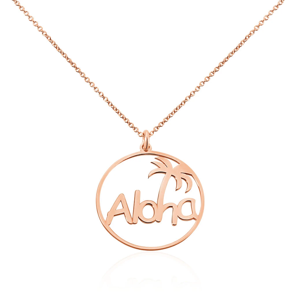Collier Argent Rose 925/1000 Forme Cercle Message Aloha 42cm