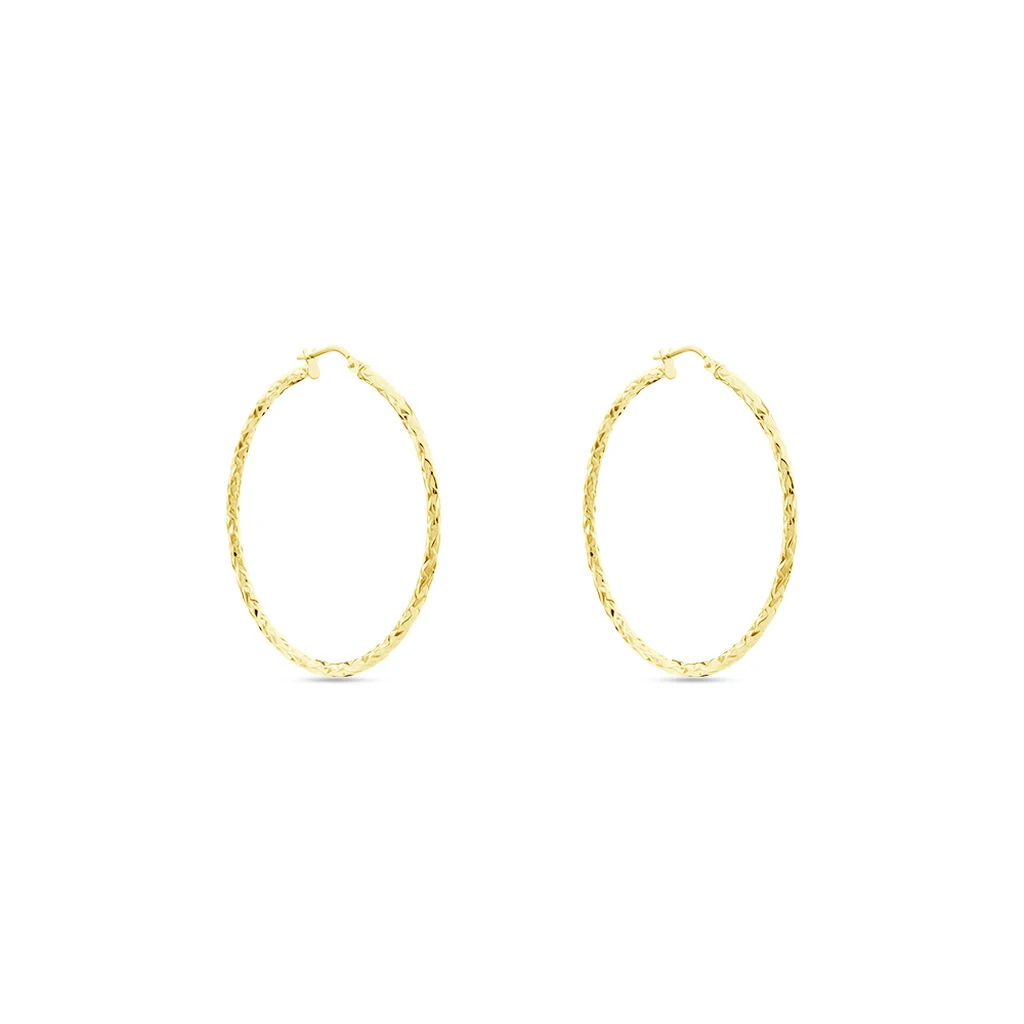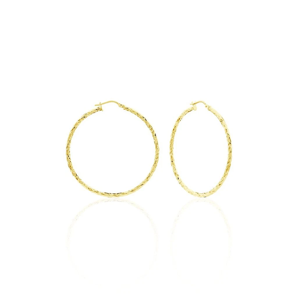 Créoles Or Jaune 375/1000 Fil Rond Diamante Epaisseur 2mm Diamètre 40mm