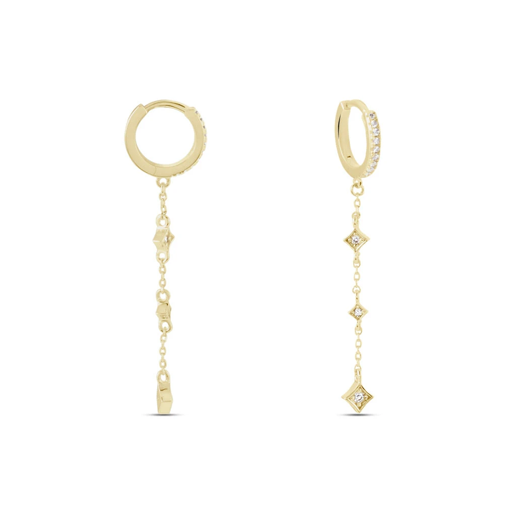 Créoles Plaque Or Chaines Forçat Losanges Pavages Oxydes De Zirconium Diamètre 8mm
