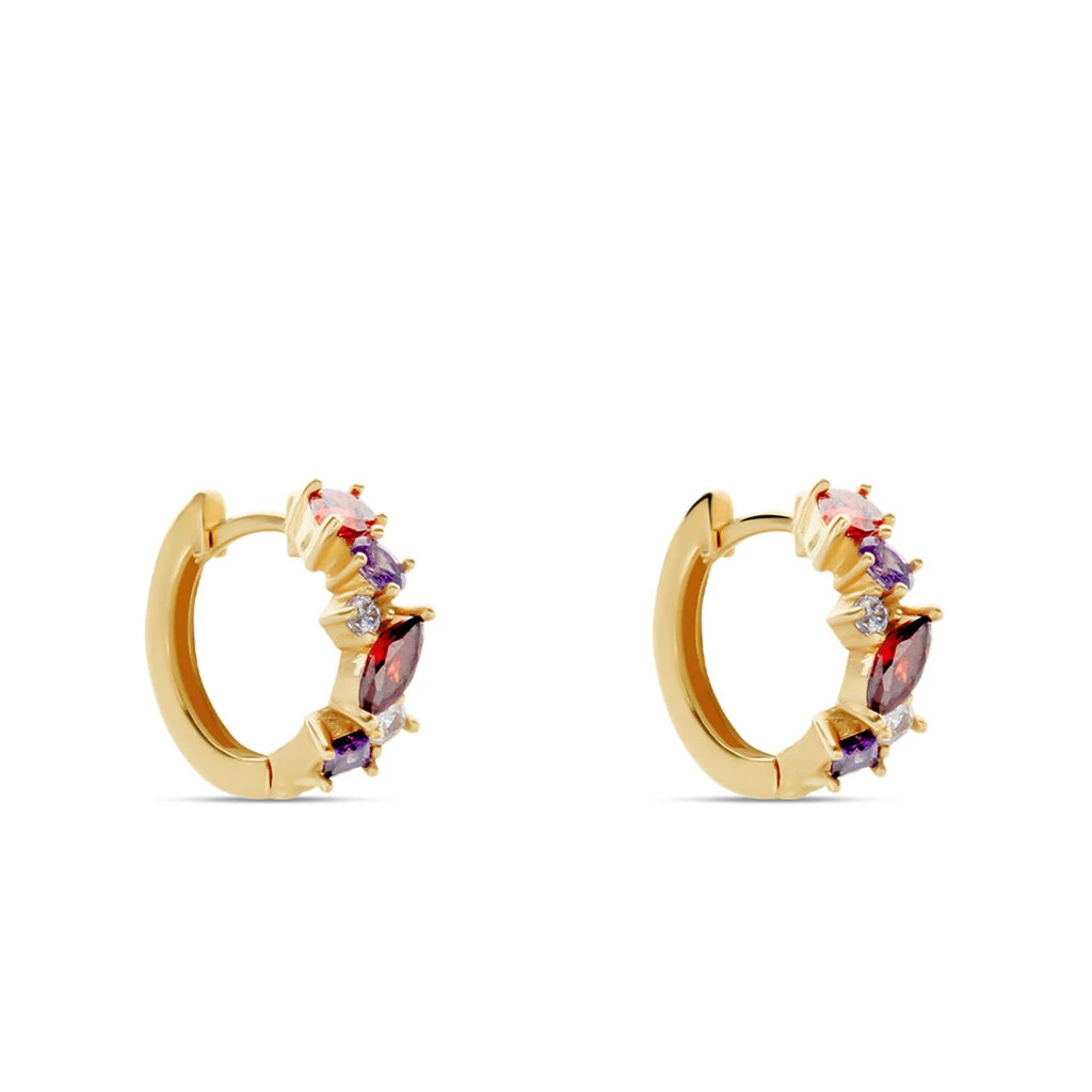 Creoles Plaque Or Jaune Multi Oxydes De Zirconium Multi Rouges Et Violet Diametre 15mm 1.5mm