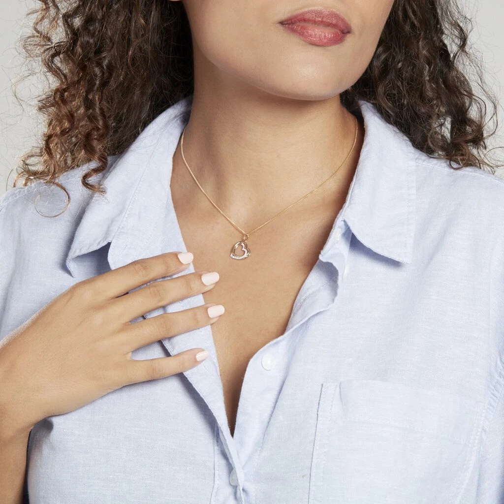 Pendentif Coeur Penche Double Or Bicolore Oxyde De Zirconium