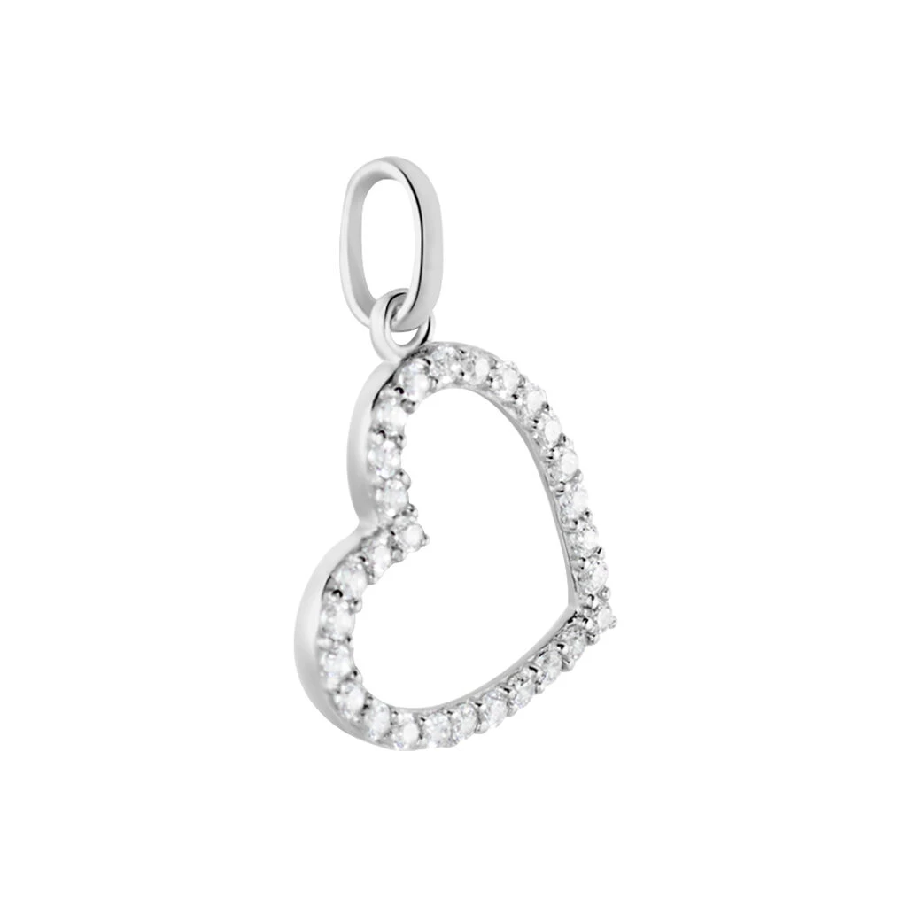 Pendentif Coeur Penche Or Blanc Oxyde De Zirconium