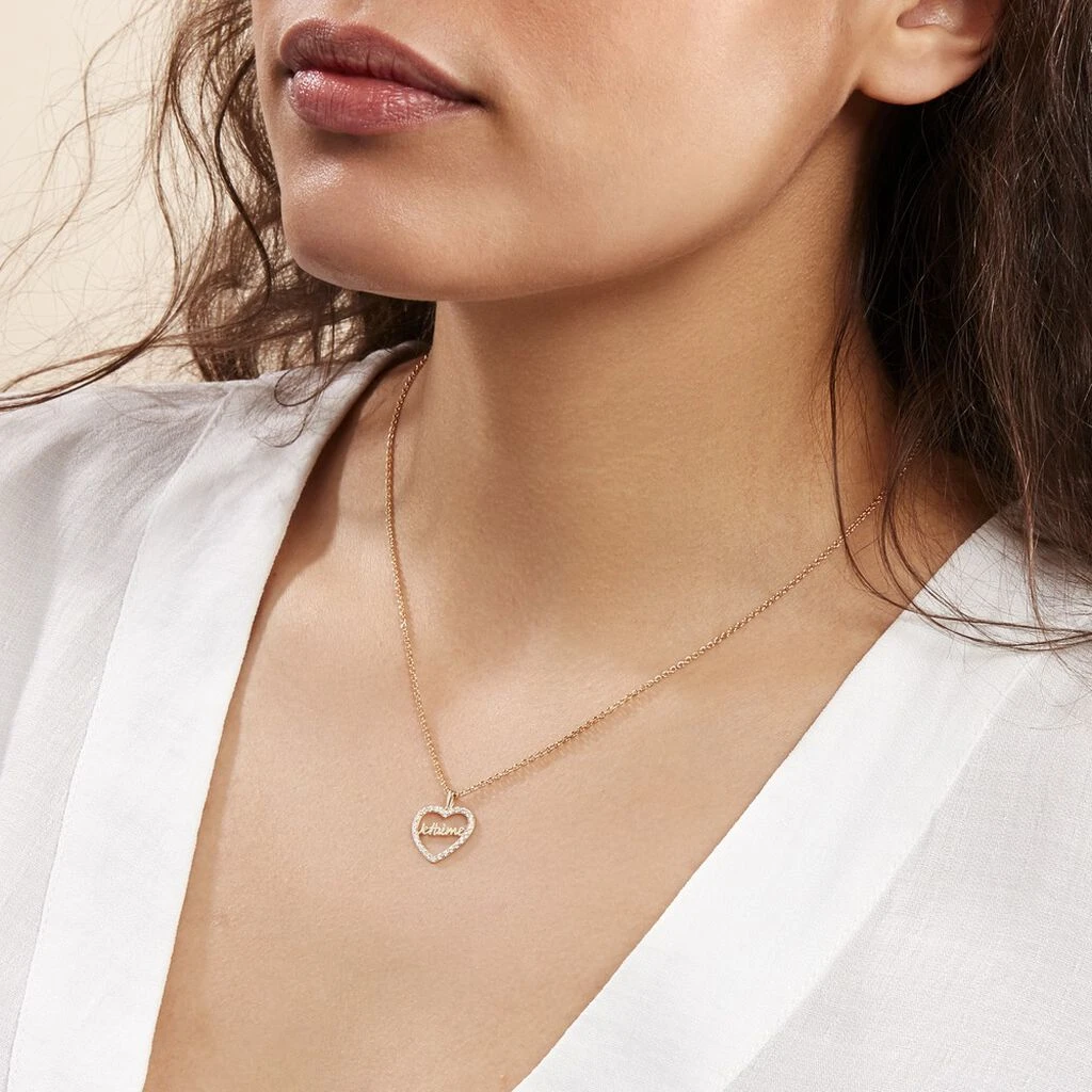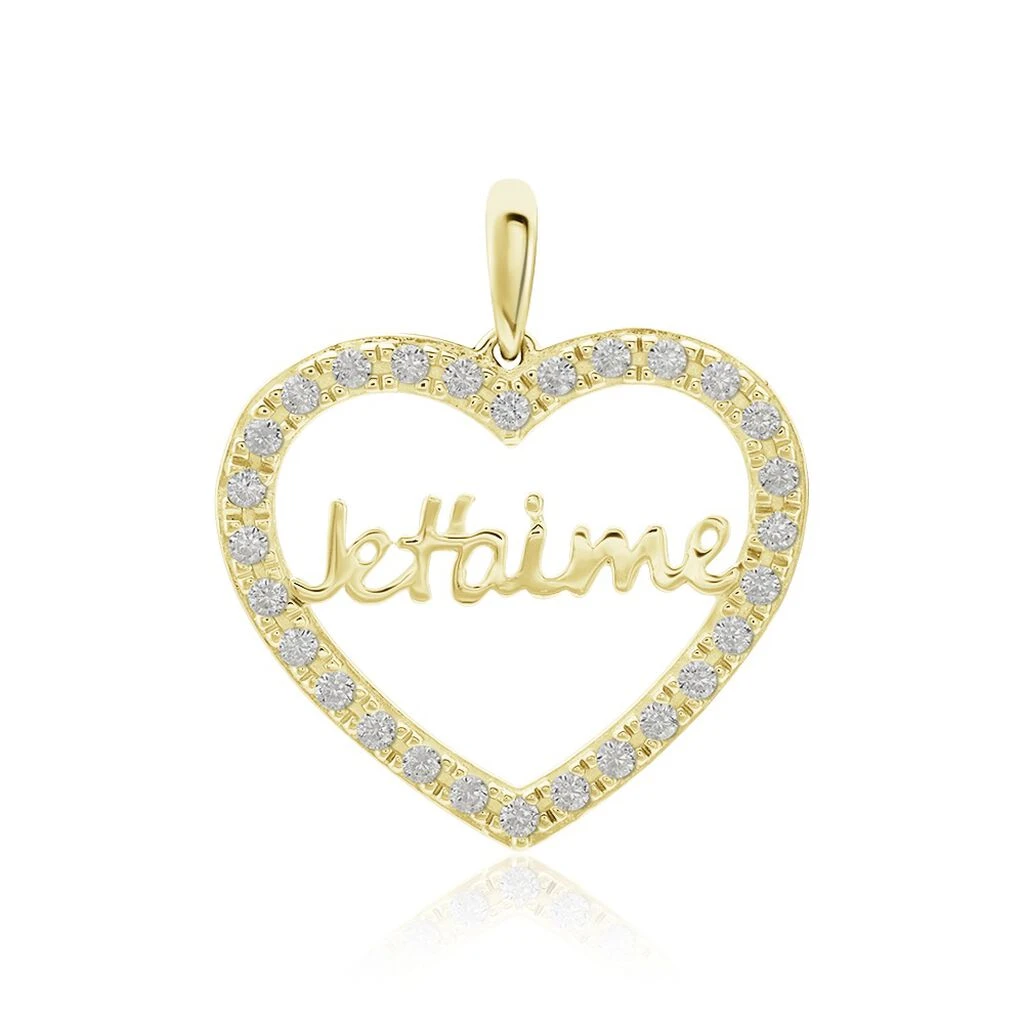 Pendentif Or Jaune 375/1000 Cœur Entourage Message Je T’aime Oxyde De Zirconium Serti Pavage